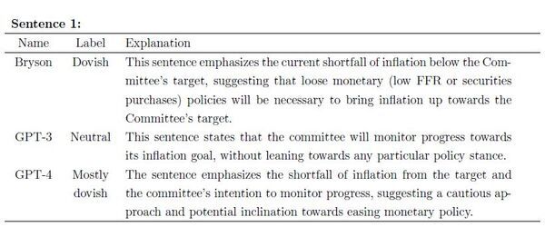 GPT-3、GPT-4和一位美联储分析师如何解释他们对美联储声明中句子的分类