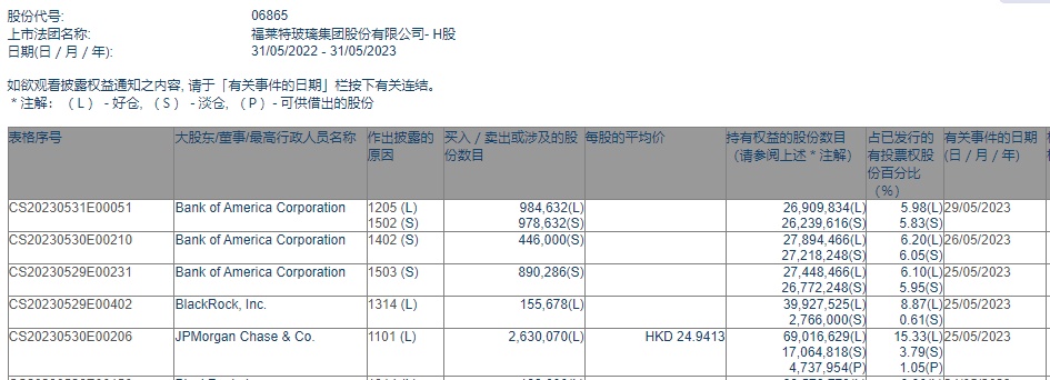 智通财经APP获悉,香港联交所最新资料显示,5月25日,小摩增持福莱特玻璃(06865)263.0070万股,每股作价24.9413港元,总金额约为6559.74万港元。增持后最新持股数目约为6901.66万股,最新持股比例为15.33%。