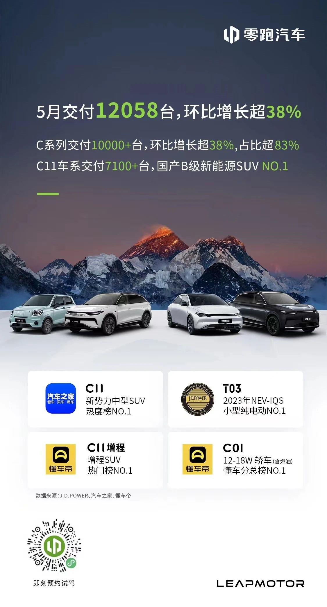 零跑汽车(09863):5月共计交付新车12058台 环比增长超38%