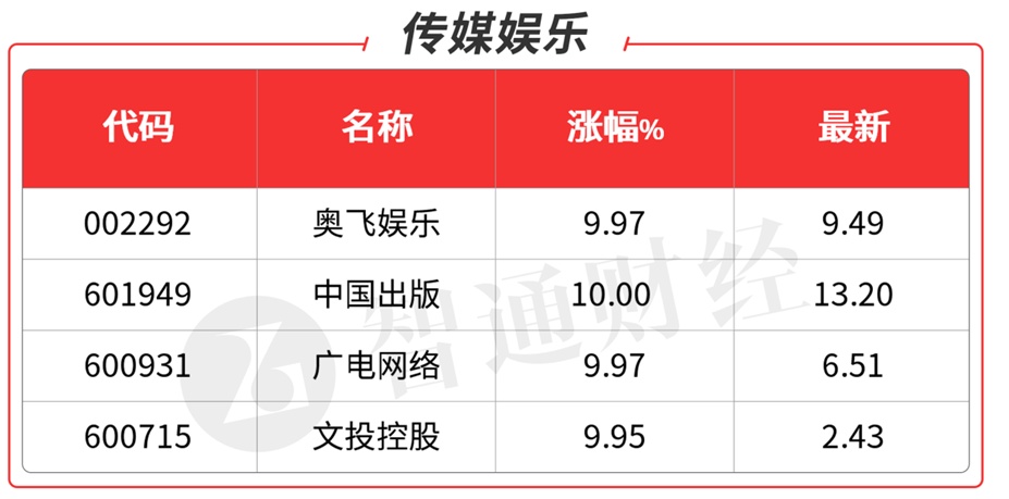 AI方向依旧强势,不过内部出现分化,龙头鸿博股份(002229.SZ),寒武纪(688256.SH)、剑桥科技(603083.SH)均展开调整。而传媒、游戏应用端方向成了宣泄方向,昨天提到的南方传媒(601900.SH)3连板,天地在线(002995.SZ)5天3板,电广传媒(000917.SZ)5天3板;奥飞娱乐(002292.SZ)、中国出版(601949.SH)、广电网络(600831.SH)等个股涨停。明日AI方向的走势尤为关键,需留意高位股的补跌风险。