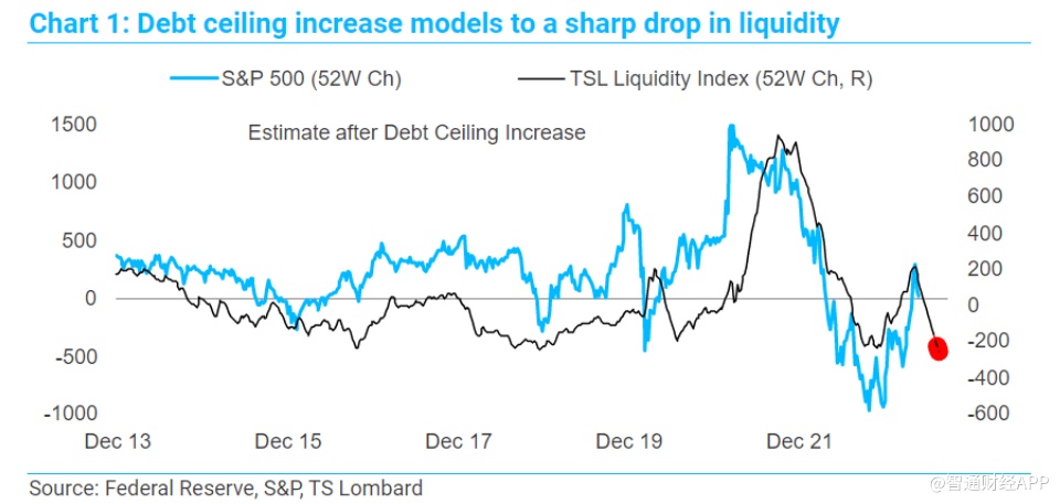 Blitz表示,流动性“自2022年底以来有所改善,股市也做出了同样的反应(尽管表现偏向于几只科技股)”。他预计流动性将迅速回落至5个月前的水平以下,股市也会出现逆转。“这种关系并不是1:1,所以股市下跌可能更糟,也可能没那么糟。”