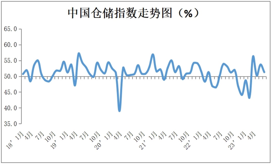 中国物流与采购联合会发布的2023年5月份中国物流业景气指数为51.5%,较上月回落2.3个百分点;中国仓储业指数为51.3%,较上月下降2.4个百分点。