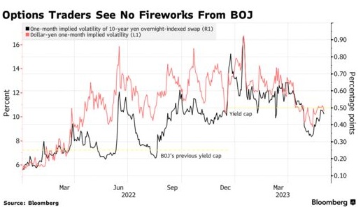 相比之下,市场定价显示,随着日本央行行长植田和男的鸽派言论获得支持,投资者认为未来几个月政策不会有什么变化。