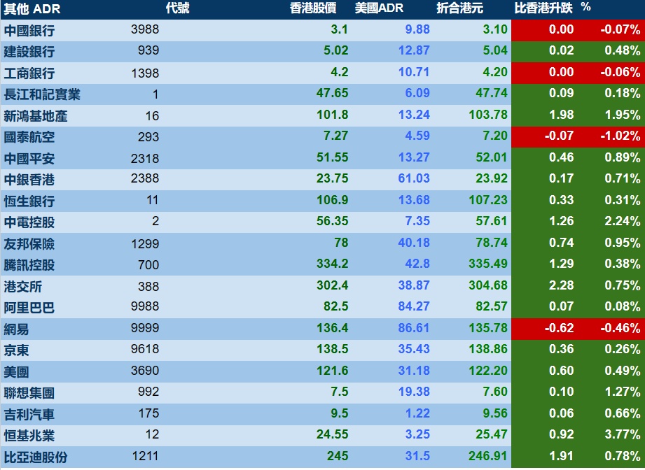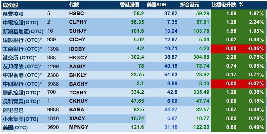 智通财经APP获悉,周五,美股三大指数集体收涨,港股ADR指数上涨,按比例计算,收报19114点,较香港收市涨164.87点或0.86%。