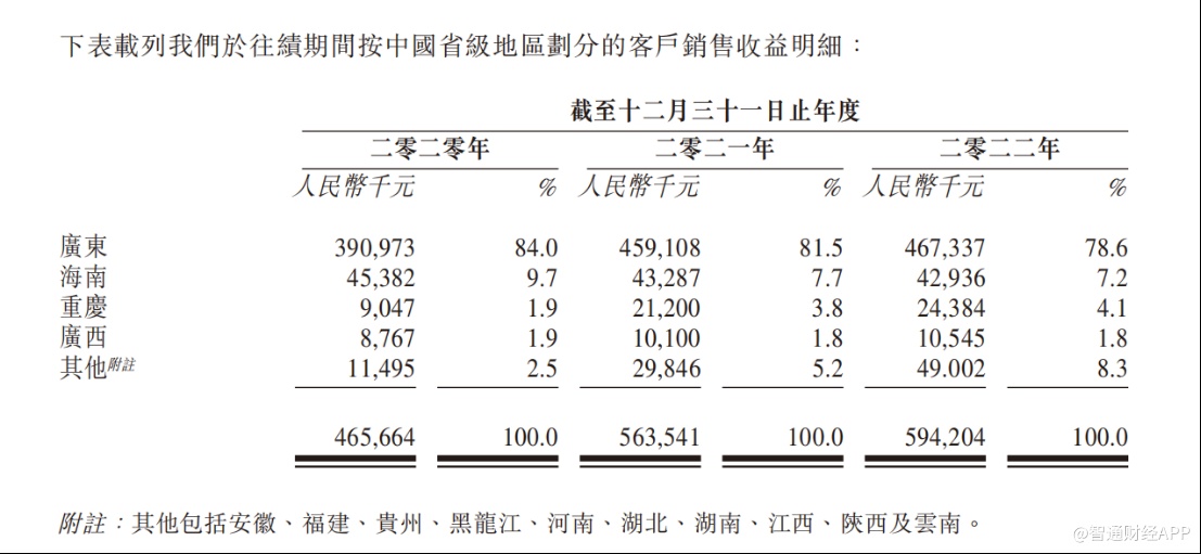 分地区看,尽管升辉清洁的业务覆盖14个省级地区,但公司主要的收入来源于广东省,2022年,公司来自广东的收入达到4.67亿元,占比78.6%。其他省份中,仅有来自海南省的收入占比超过5%。