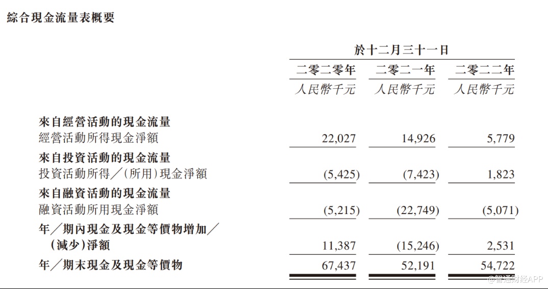 据智通财经APP观察,升辉清洁业务辐射全国并非易事。首先公司需要足够的资金支撑。招股书显示,2020年至2022年,公司来自经营活动所得现金净额从2202.7万元下滑至577.9万元。同期现金及现金等价物从6743.7万元下滑至5472.2万元。
