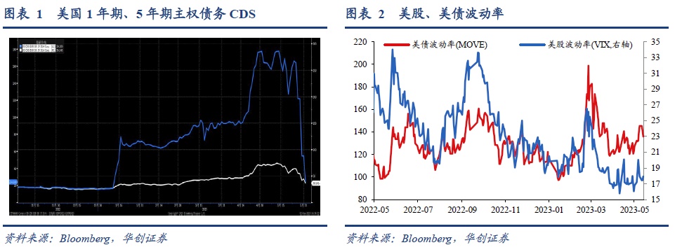 美国主权债务CDS迅速回落。美国债务上限是近期市场最为关注的热点,导致市场对美债违约风险的担忧,美国主权债务1年期、5年期CDS迅速上升,美债波动率也有所提高。随着美国众议院议长麦卡锡披露两党达成协议细节,美国主权债务CDS迅速回落,美债波动率也开始下降。