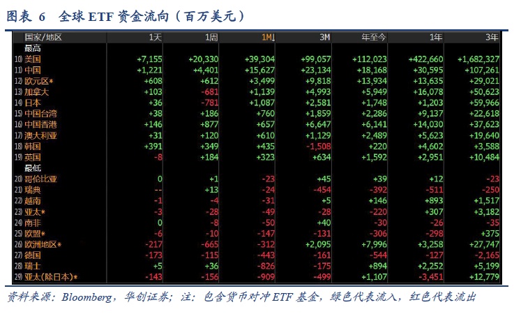 全球ETF资金主要流向美国和中国。2023年5月全球ETF资金主要流向美国和中国,单月流入规模分别为392.82和155.34亿美元。年初至今,全球ETF资金流向美国和中国的规模分别为1120和182亿美元。