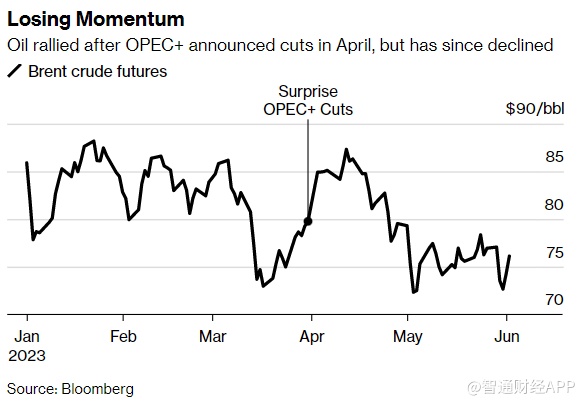 在两个月前达成的上一轮减产措施未能推动油价持续上涨之后,沙特加大了力度。欧佩克+4月初出人意料地宣布每日减产约160万桶,但此后疲弱的经济数据打压了石油期货,5月份纽约原油期货下跌了11%。