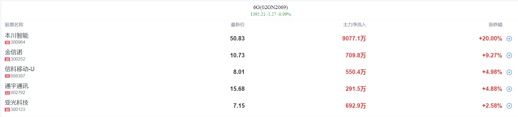 6G、通信设备拉升,本川智能、兆龙互连20CM涨停,长江通信、中瓷电子涨停。