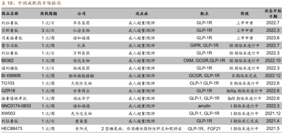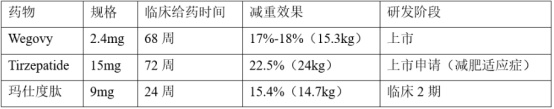 而在研产品方面,信达生物(01801)的玛仕度肽是国内研发速度最快的双靶点减肥药物,在2型糖尿病和肥胖症两大关键适应症上均已进入III 期临床,其他在研产品大多处于I期和II期临床。