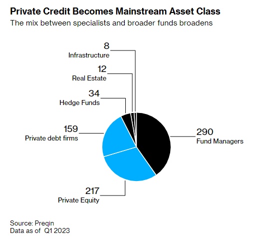 私人信贷市场日益成为一个包罗万象的概念,囊括了从传统的对小企业的直接贷款、收购融资,甚至房地产和基础设施债务等方方面面。简而言之,这是基金经理利用他们所说的策略来规避公开市场按市值计价损失带来的波动的一种方式。
