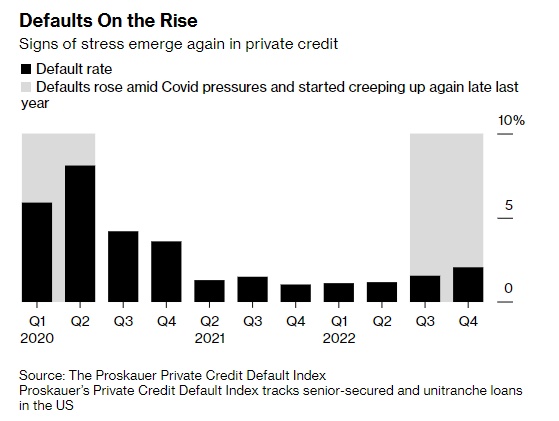 根据KBRA Analytics汇编的数据,今年迄今为止,直接贷款市场的违约金额已达17亿美元。Proskauer Rose调查的约75%的私人信贷高管预计,明年他们投资组合中的违约率将上升。