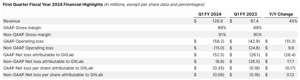 智通财经APP获悉,代码托管及协作平台服务供应商GitLab(GTLB.US)公布了截至2023年4月30日的2024财年第一季度财务业绩。财报显示,GitLab