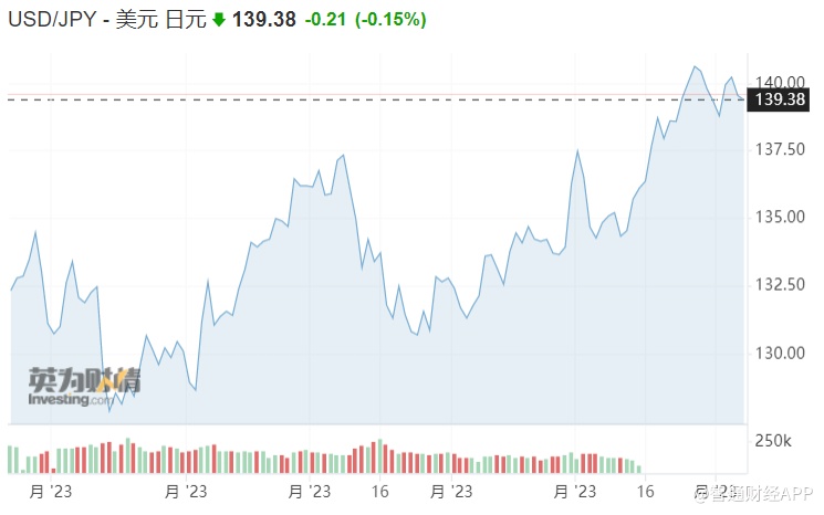 日元兑美元汇率周一交投于略高于140日元兑1美元的水平,日元汇率上月底自去年11月以来首次跌破这一水平。