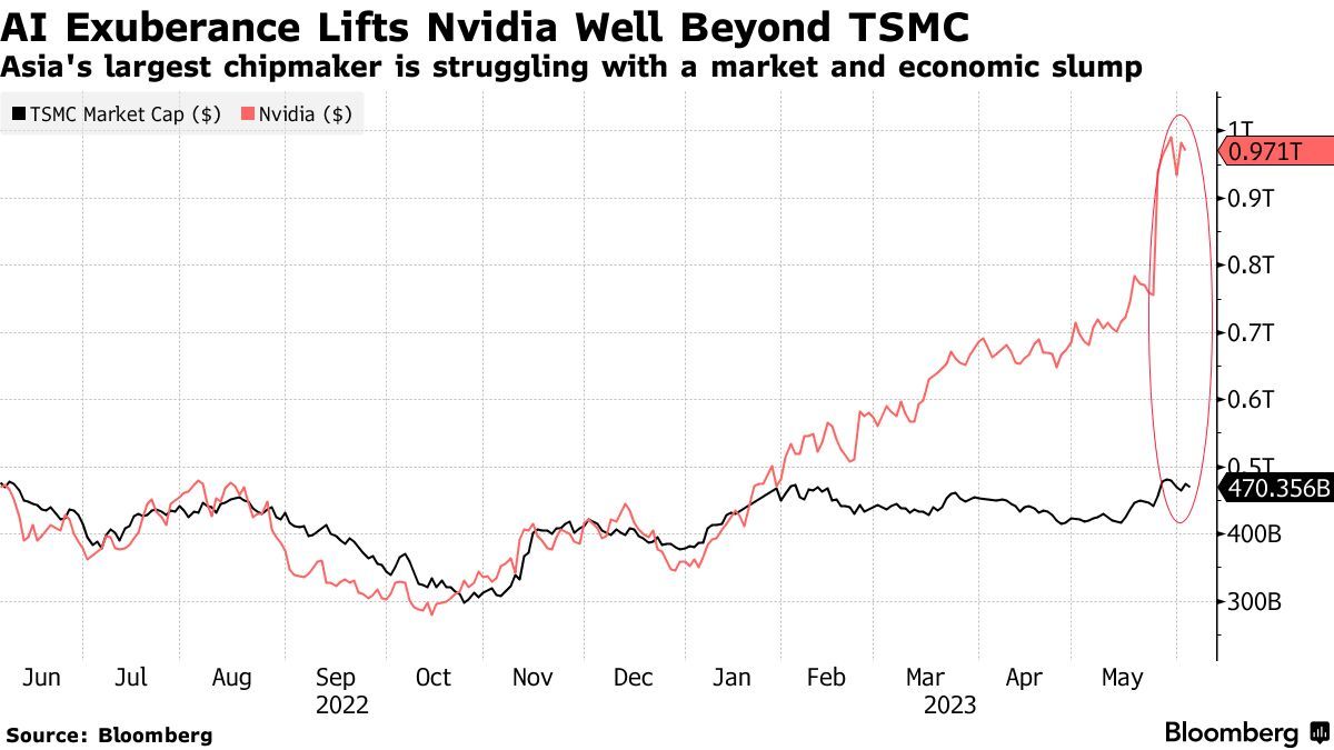 人工智能繁荣助力英伟达市值超越台积电——这家亚洲最大规模的芯片制造商正艰难应对市场和经济低迷
