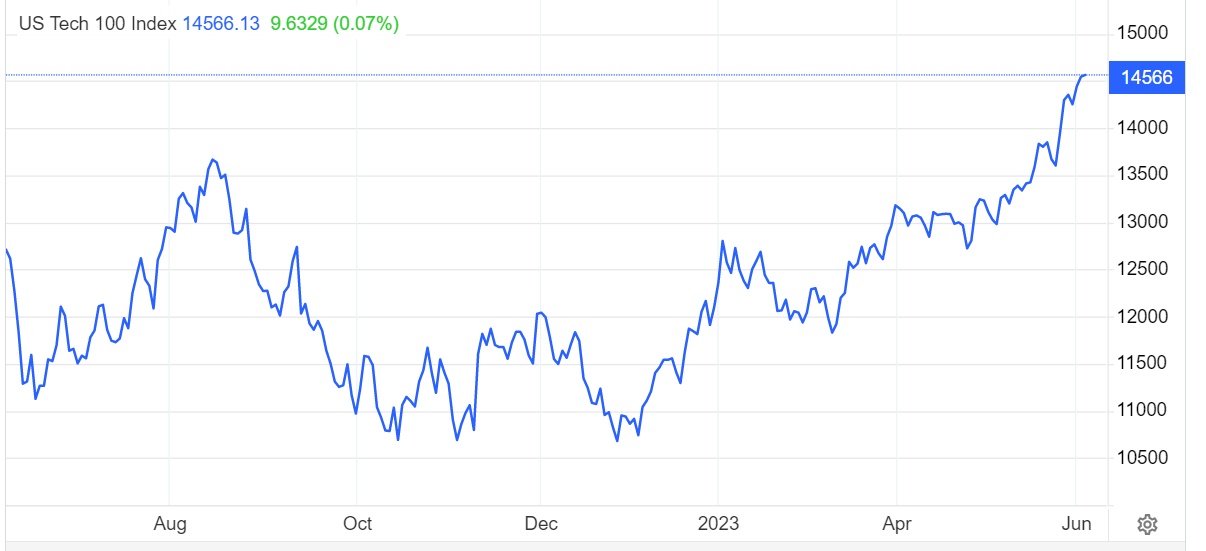 智通财经APP获悉,来自花旗集团(Citigroup)的量化投资策略师们表示,今年以来大幅上涨的美股科技股涨势还将继续,主要逻辑在于市场围绕人工智能领域的投资狂潮(AI hype),以及投资者们对于美联储即将暂停加息的预期不断升温,这些因素都给美股科技股带来了巨大的提振力度。