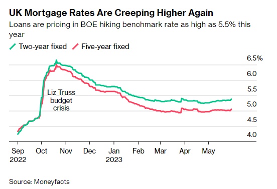由于高于预期的通胀促使投资者押注英国央行将在整个夏季继续加息,一直在放缓的抵押贷款利率在过去几周再次走高。