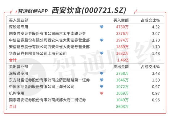 西安饮食(000721.SZ):龙虎榜阵容豪华,机构席位对倒卖出325万元,深股通对倒买入982万元,买二是顶级游资作手新一的席位买入3345万元,买三是顶级游资方新侠的席位买入2971万元,当日净买入7800万元,该股底部首板,预计压力位在60日线附近。