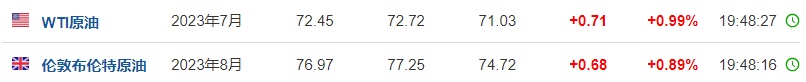 3. 截至发稿,WTI原油涨0.99%,报72.45美元/桶。布伦特原油涨0.89%,报76.97美元/桶。