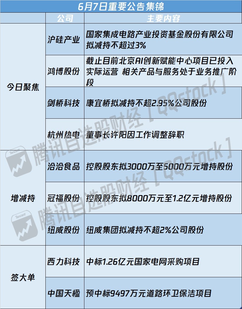 1、沪硅产业:国家集成电路产业投资基金股份有限公司拟减持不超过3%