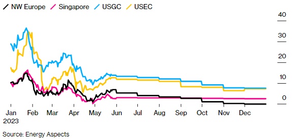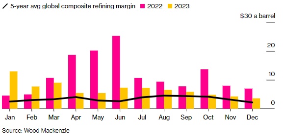 Wood Mackenzie表示,今年与2022年“截然不同”。去年,西方国家担心,由于俄乌冲突的影响,俄罗斯会失去柴油供应。现在,汽油需求正在为炼油厂定下基调。