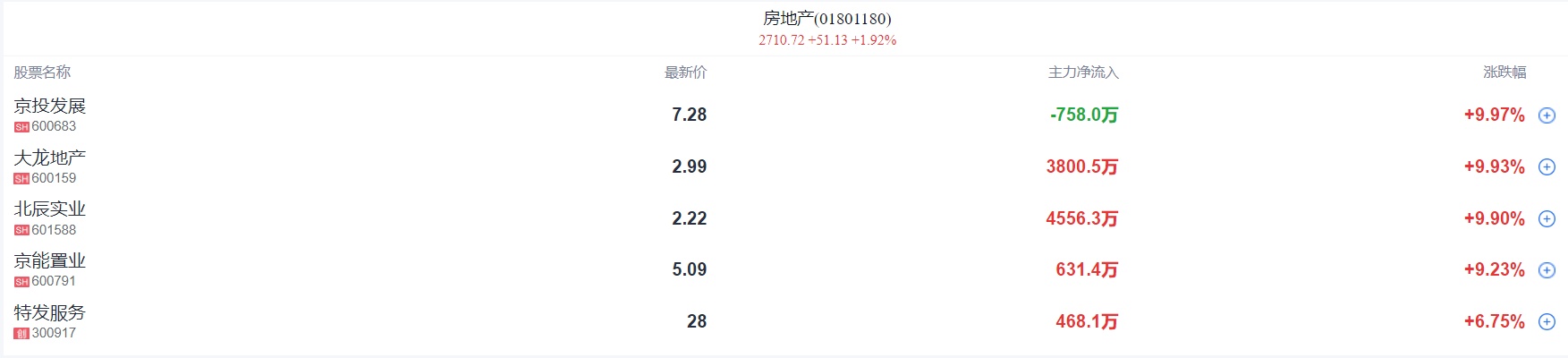 2、房地产板块异动拉升