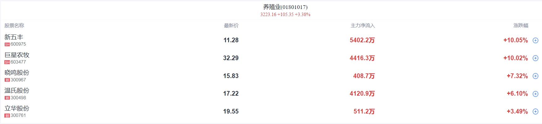 猪肉股迎来反弹,新五丰涨停。