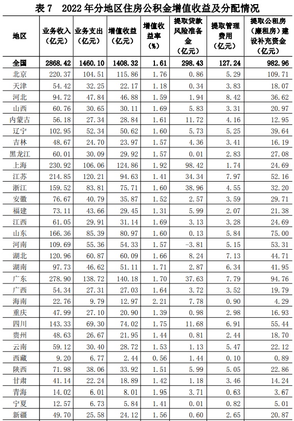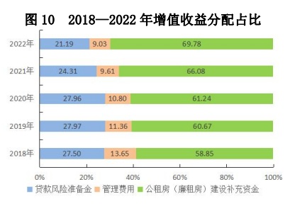 (四)增值收益分配。2022年,提取住房公积金贷款风险准备金298.43亿元,提取管理费用127.24亿元,提取公租房(廉租房)建设补充资金982.96亿元。