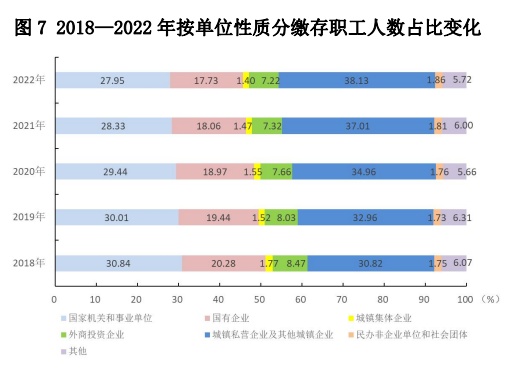 缴存职工中,城镇私营企业及其他城镇企业、外商投资企业、民办非企业单位和社会团体,以及其他类型单位占52.93%,比上年增加0.79个百分点,占比进一步增加。