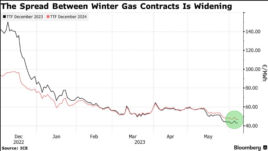 Endex的数据显示,2023年12月的天然气期货交易价格比2024年12月低8%左右,这与1月份的情况正好相反,当时最接近的冬季合约价格出现了溢价。