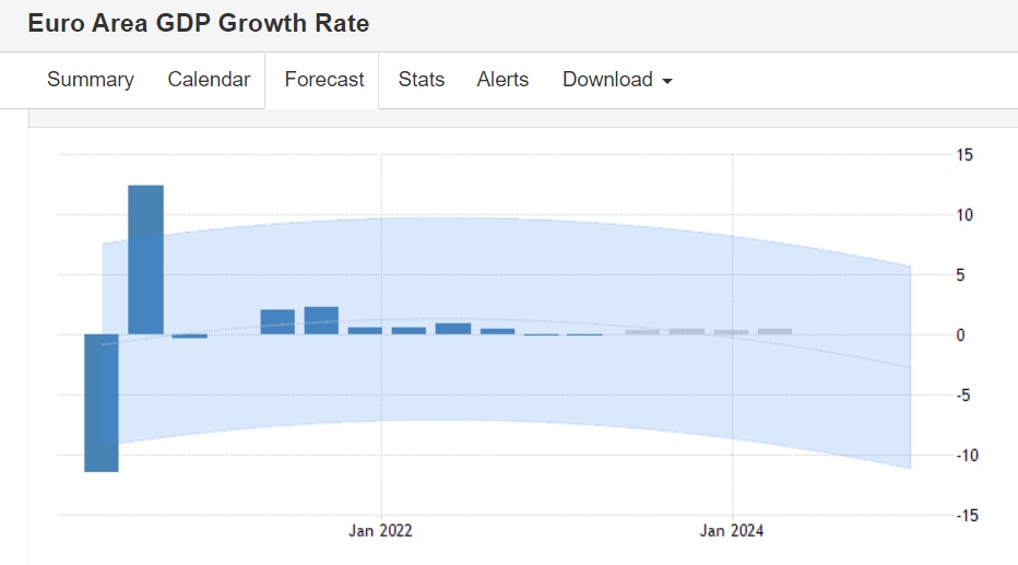 根据数据统计平台Trading Economics按照全球宏观模型和分析师预期汇编的预测数据,数据显示截至本季度末,欧元区GDP 环比增长率预计为小幅增长0.30%,此后将不断延续小幅增长态势。