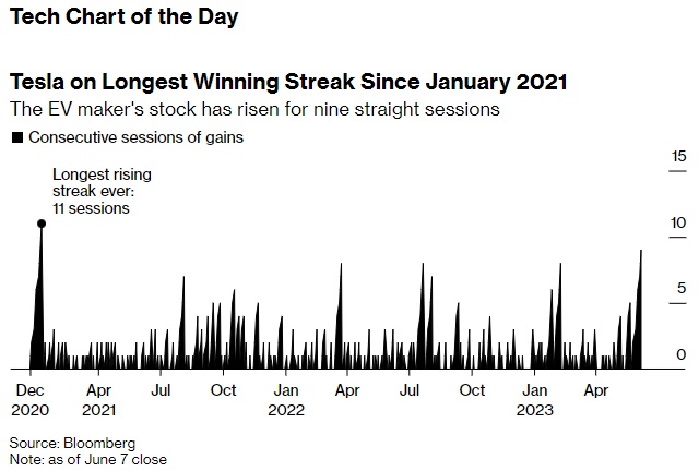 正如该股最近的反弹所显示的那样,伍德确实有一些支持者。周三,特斯拉股价连续第九个交易日上涨,这是自2021年1月以来最长的连续上涨。