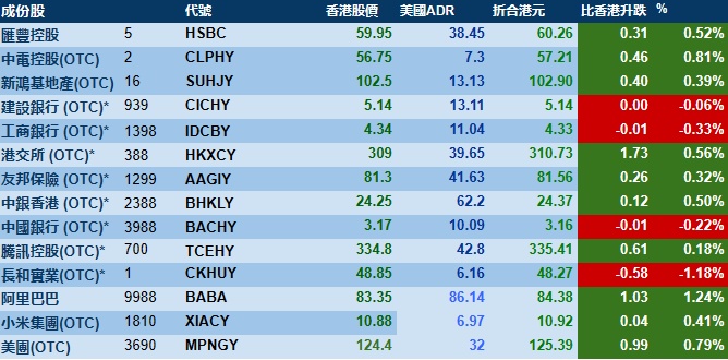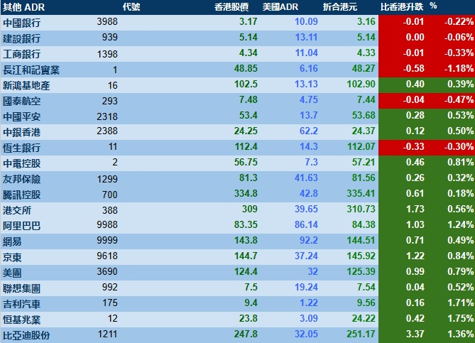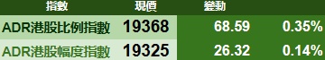 智通财经APP获悉,周四,美股三大指数集体收涨,港股ADR指数上涨,按比例计算,收报19368点,较香港收市张68.59点或0.35%。