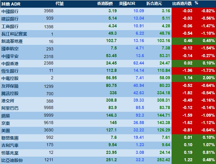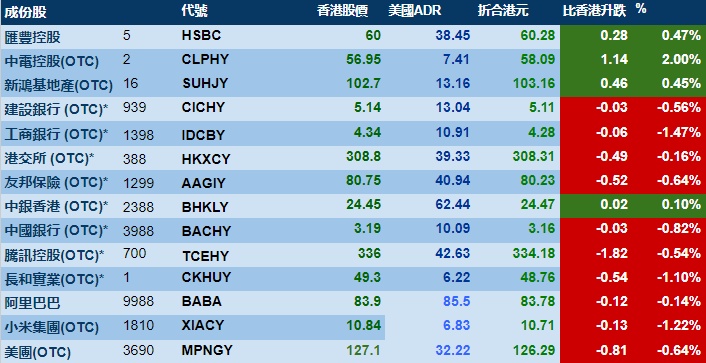 智通财经APP获悉,周五,美股三大指数集体收涨,港股ADR指数下跌,按比例计算,收报19320点,较香港收市跌68.90点或0.36%。