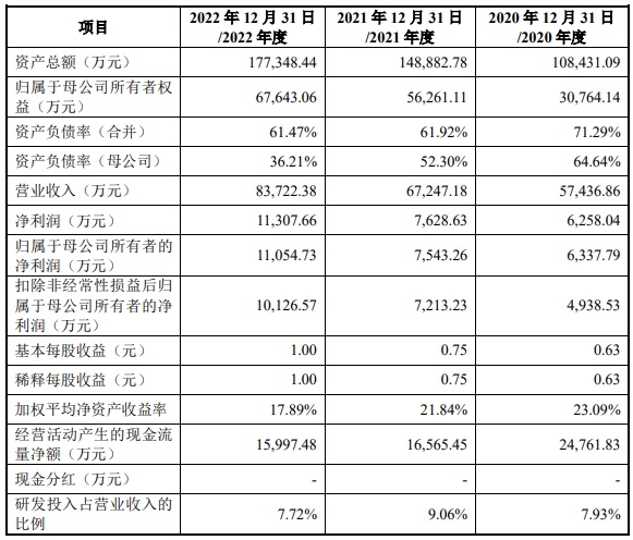 财务方面,于2020年度、2021年度以及2022年度,国科军工实现营业收入分别约为5.74亿元、6.72亿元、8.37亿元,其中。公司实现净利润分别为6258.04万元、7628.63万元、11307.66万元。