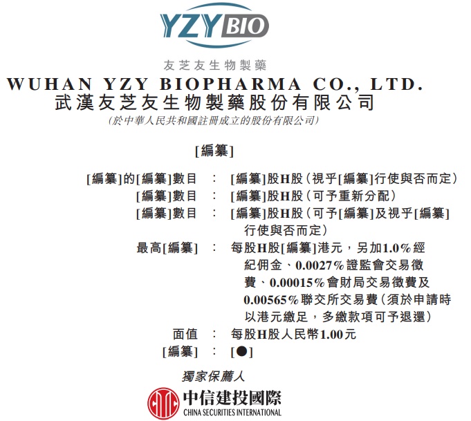 智通财经APP获悉,据港交所6月11日披露,Wuhan YZY Biopharma Co.,LTD.(武汉友芝友生物制药股份有限公司) 向港交所主板提交上市申请,中信建投国际为其独家保荐人。该公司曾于2022年12月9日向港交所递交上市申请。