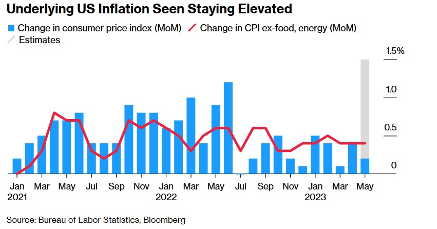 美联储面临的其中一个问题在于,周二将公布5月份消费者价格指数(CPI)报告,这是FOMC会议的第一天。如果读数过高,可能会使得更多的美联储官员们放弃跳过6月加息计划的可能性,转而推进继续加息25个基点。