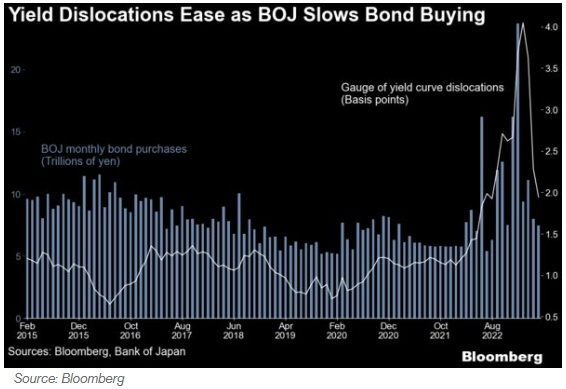 但自3月份以来,日本10年期政府债券的收益率一直低于0.5%的上限,日本央行能够将其债券购买规模从1月份创纪录的23.7万亿日元缩减至上月的7.4万亿日元(531亿美元)。