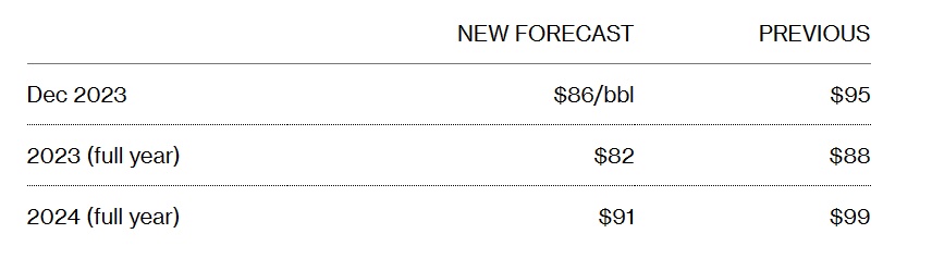 据了解,华尔街大行高盛6个月来第三次下调全球基准油价,将截至12月的布伦特原油价格预期从此前的每桶95美元下调至86美元,并将WTI原油价格预期从每桶89美元降至81美元,高盛表示下调油价预期的主要原因是供应上升和需求前景趋弱。此前高盛一直坚持每桶100美元的看涨预测。