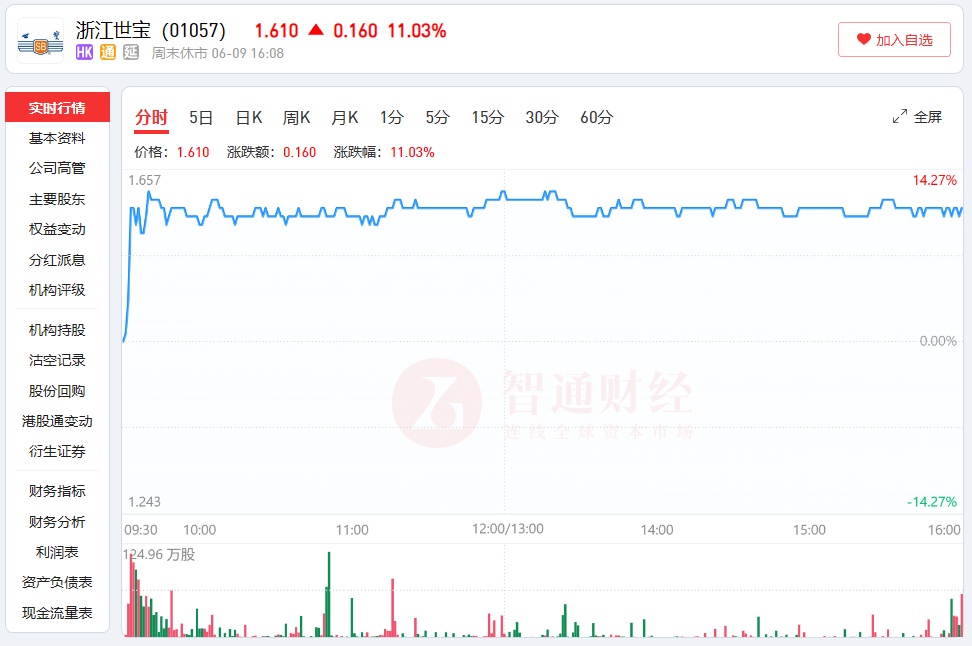 经过长时间回调的浙江世宝(01057,002703.SZ)终于于6月9日让不少人眼前一亮——当日其H股直线高开,盘中一度涨超12%,截止收盘大涨11.03%,报于1.61港元。与此同时,其A股也于当日强势涨停,报于8.22元。