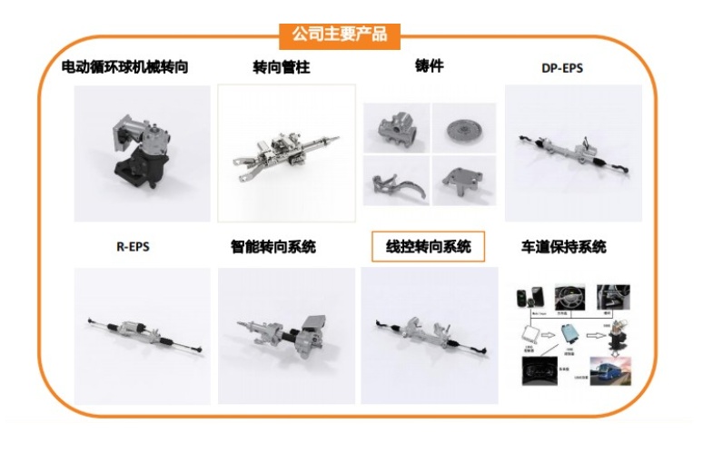 更近一步来看,该公司主要产品涵盖电动循环球机械转向、转向管柱、DP-EPS、R-EPS、智能转向系统、线控转向系统等产品。