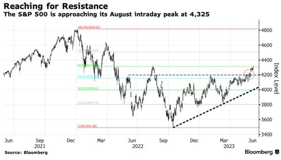 预计美联储将在本周暂停紧缩政策,这将是15个月来的首次。然而,风险在于,经济的弹性使通胀率居高不下,促使官员们最早在下个月再次加息,或者在更长时间内保持借贷成本高企。这可能会给对利率敏感的大型科技股带来压力,这些股一直是市场上涨的关键。