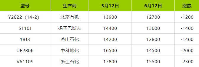 国内主流市场EVA报盘变动表: