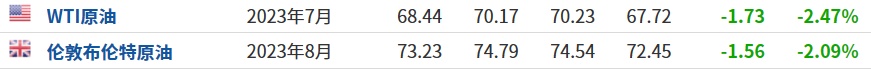 3.截至发稿,WTI原油跌2.47%,报68.44美元/桶。布伦特原油跌2.09%,报73.23美元/桶。