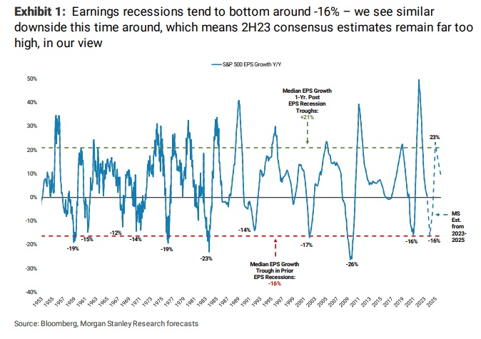 他指出,在过去70年里,美股盈利增速通常在极度接近-16%的地方触底,“这正是我们预测的2023年的降幅”。他补充称:“历史分析表明,盈利衰退不太可能在目前的水平上停止或逆转。”