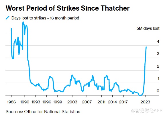 自去年年初以来,损失的总天数接近390万,这是自1989-1990年英国陷入动乱以来的最多天数。