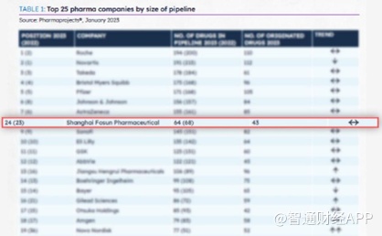 智通财经APP了解到,近日,全球权威医药智库信息平台 Informa Pharma Intelligence发布《2023年医药研发趋势年度分析》白皮书(Pharma R&D Annual Review 2023),复星医药、恒瑞、石药3家中国创新药企跻身全球医药企业研发管线规模Top25。