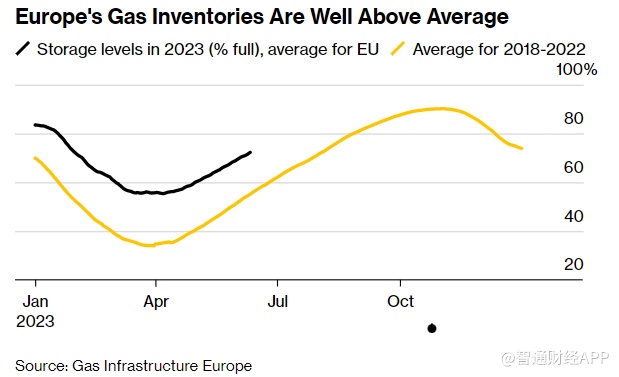 伯恩斯坦分析师预计,进入下一个冬季,欧洲将填满储气罐,但在冬季结束时库存将降至48%,略低于今年早些时候的水平。