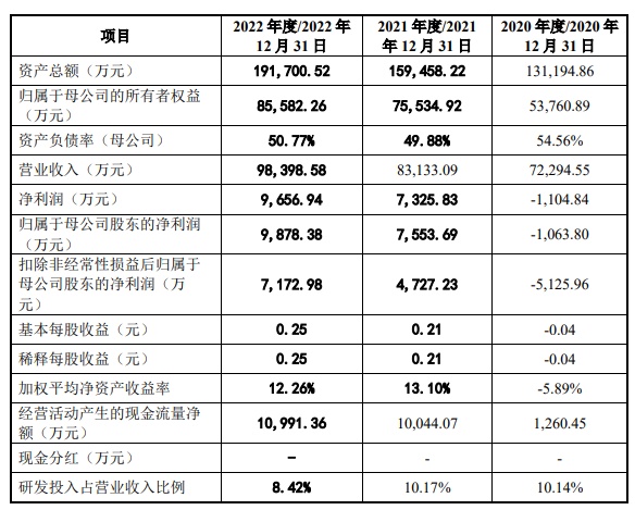 财务方面,于2020年度、2021年度及2022年度,华丰科技实现营业收入分别约为7.23亿元、8.31亿元及9.84亿元人民币。同期,归属于母公司股东的净利润分别约为-1063.80万元、7553.69万元及9878.38万元人民币。